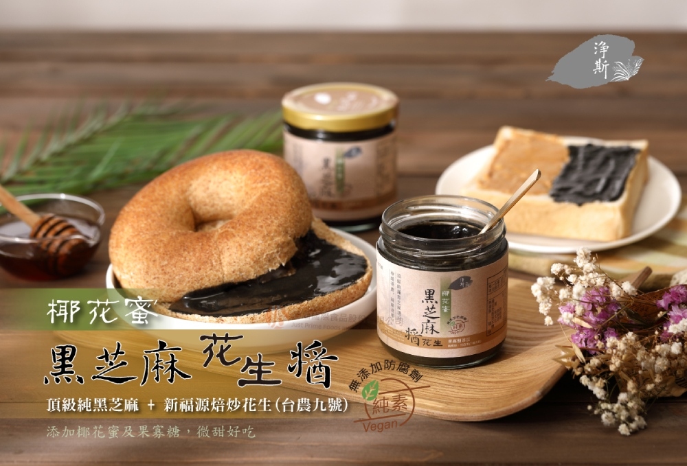 嚴選頂級原粒黑芝麻與與台農九號焙炒花生,經中度焙炒,使用日本極細磨醬設備研磨,呈現獨有的絹絲滑順口感,極細緻微粒的質地令人驚艷,再與椰花蜜及果寡糖充分調和,微甜不膩口,是讓人愛上的滋味。